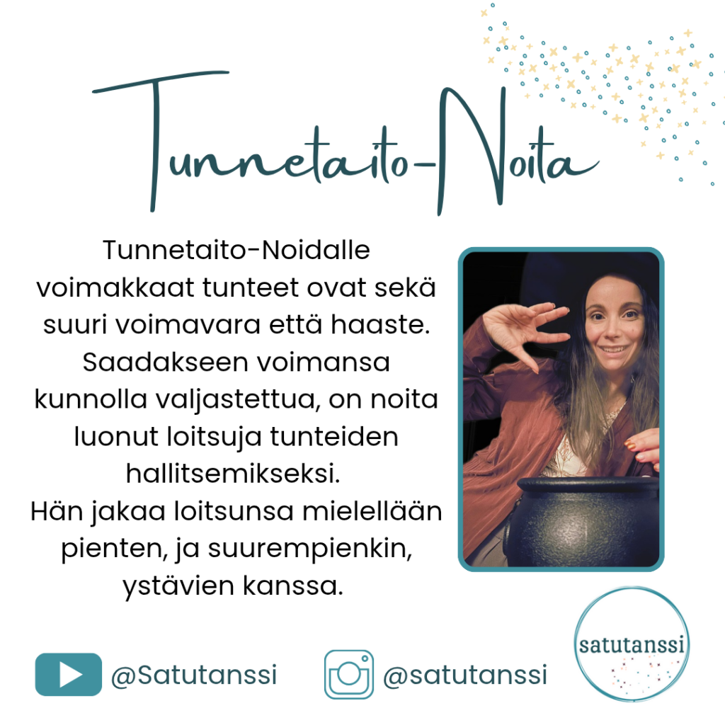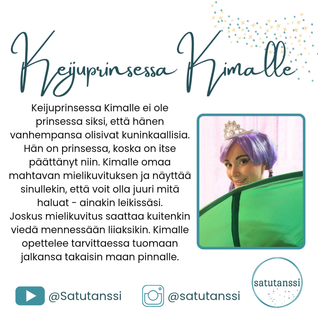 Satutanssin maailmassa asustaa tiestysti tanssivia satuhahmoja. Jokaisella hahmolla on omat vahvuutensa ja haasteessa – kuten meillä kaikilla.